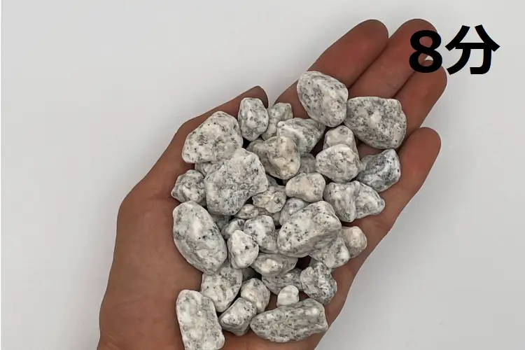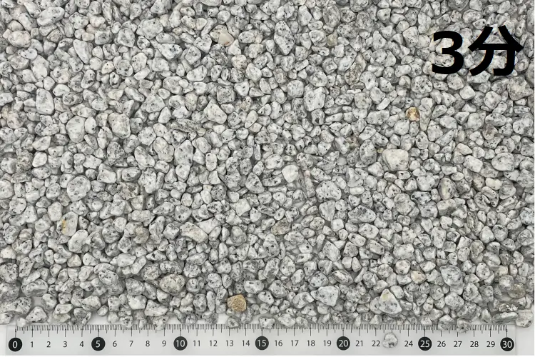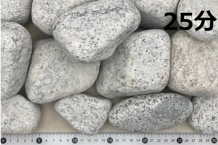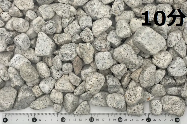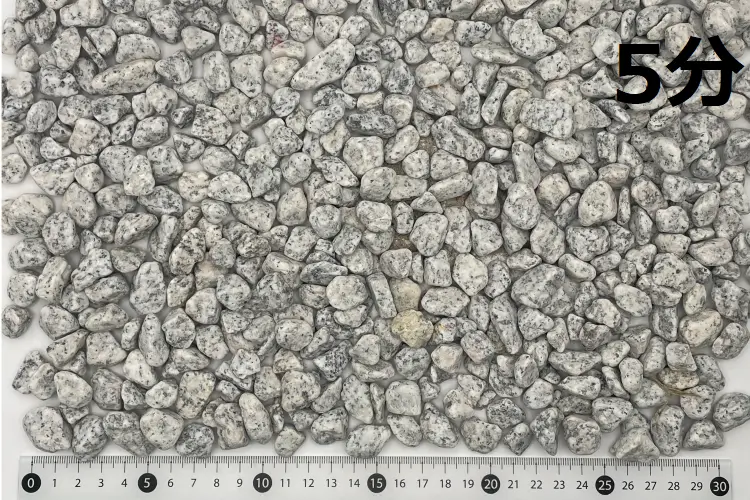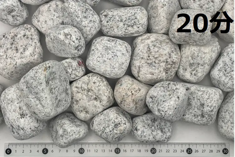 こちらも庭園砂利の定番です。白御影をタンブルしたものです。 大量使用物件に対応できます。