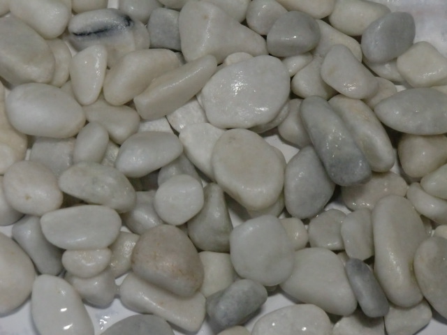 山東省の白玉の特徴は白に黒の線が入っています。写真のように黒いラインがありますが、価格が安いのでホームセンターなどでは、この砂利が多く販売されています。